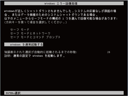 OSは異常終了しているため、次回OS起動時に "Windows エラー回復処理" という