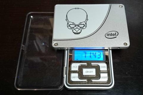2.5インチ、7mm厚のIntel SSD 730 ボディにサイバーなドクロマークをあしらった「Intel SSD 730」エンタープライズ向けコントローラーなどの採用にともない MTBF(平均故障間隔)は、インテル製コンシューマー向けSSDの120万時間から200万時間に向上しています。