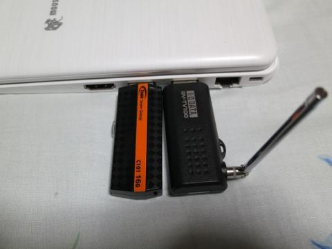 写真は手持ちで一番大きなUSBデバイスのワンセグチューナーであるGV-TV100とあとよくわからないTeamのUSBメモリを並べてみました。ぎりぎり。
