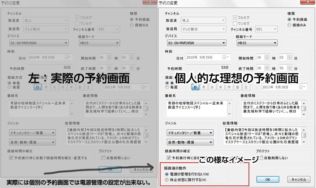 本文中で提案した様に、録画毎に電源操作の設定が出来るようなインターフェースが最適だと私は考えます。