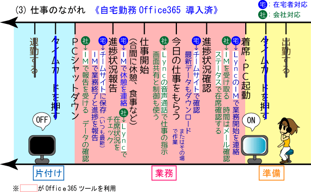 これらを Office365 を利用しクリアして、《会社に行く場合》《在宅勤務の場合》と比較した時に、どちらもほぼ同じように働いていれば、仕事の能率も下がっておらず、導入してよいということにもなるかと思います。