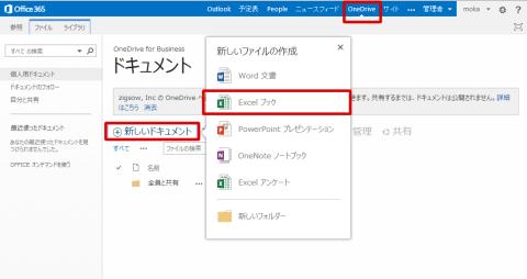 ログイン後OneDrive上のファイルが出てきますのでディスクトップで作成したエクセルファイ
