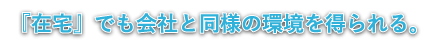 このことにより、遠隔地や自宅で作業を行いたい場合においても、ハード的には社内にいる場合とまったく遜色のない環境を作り出すことが可能となっています。
