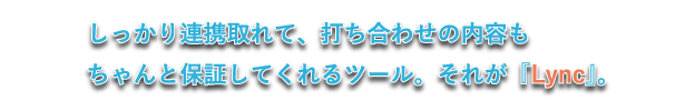 そしてOffice 365の包括的なサービスの中の一つ「Lync Online」を使えば、リアルタイムに相手の状況を知りつつ連絡を取ることが可能となります。