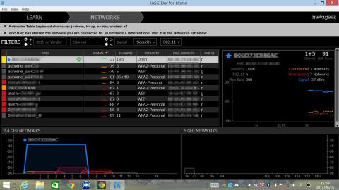 無線LANの混雑具合を、inSSIDer3というWindowsのソフトで、電波状況を調べてみました。