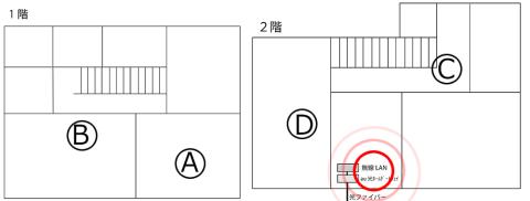 2階中央に無線LANルーターがあります。1階と2階の2地点を計測し、比較します。