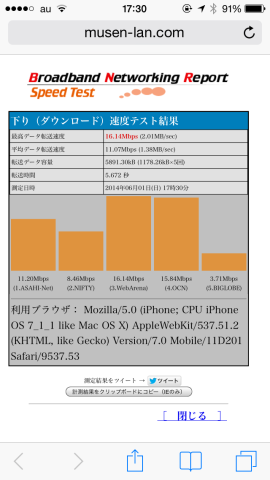 こちらのアクセスポイントと速度比較してみますよ。