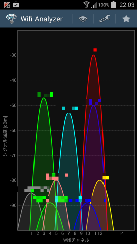 グラフの山が大きいほど電波がよく届いているということです。