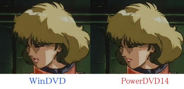 「PowerDVD14 Ultra」はシャープなくっきりとした画質になっていますが、「WinDVD」はぼやけてしまっているのがよく分かります。