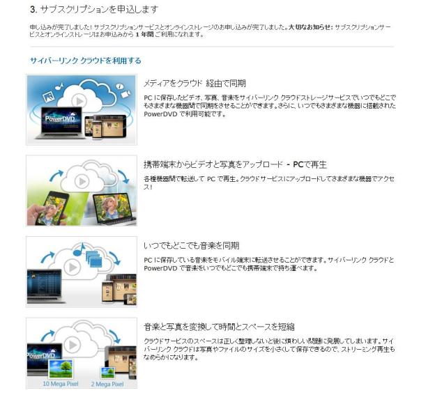 このソフトにはサイバーリンククラウド(容量10GB 12カ月)が使える特典が付いてます。