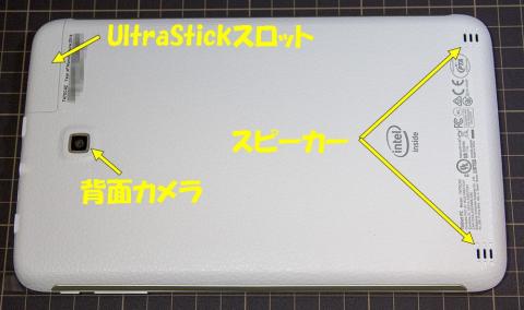 背面の上部にカメラと UltraStickスロット、下部の左右にスピーカーが付いています。