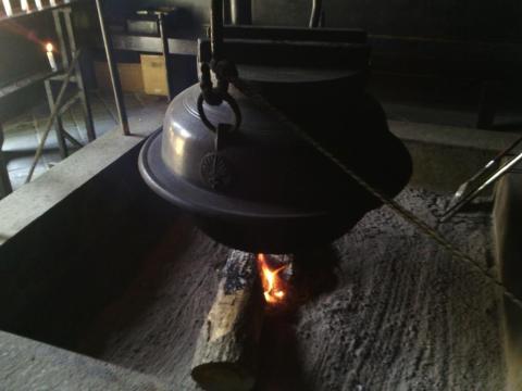 消えることのない神秘の灯。大茶釜の湯は、万病に効く霊水と言われている。