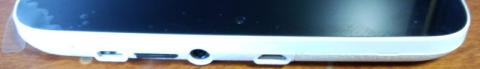 上部から。左からmicroHDMI端子、microSDスロット、イヤホン端子、microUSB端子。今どきのスマホと同じ構成なので使いまわせて楽チン。充電はmicroUSB端子から行うので付属のアダプタ以外にPCからも充電できちゃいます。撮影用にmicroSDカード挿そうと探したけれど見つからなーい・・・と思ったらすでに挿したの忘れてました。ハミ出ないので見た目もよろしい。ちなみにSDカードの裏面を上にして挿すような感じになるので反対向きでムリヤリ突っ込まないように要注意です。