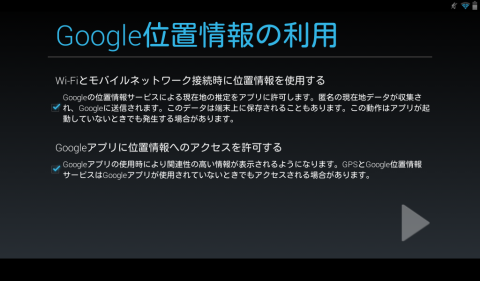 CLIDE7の電源を入れるとセットアップが始まります。ほぼすべてのAndroid端末に共通の操作なので既にお持ちの方はすっ飛ばしてください。