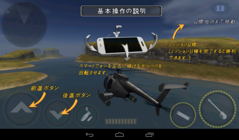 PCゲームでは機首を持ち上げたまんま一回転して地面に激突する私ですが、タブレットを傾けて操作する分には一回転することもなく快適フライト。