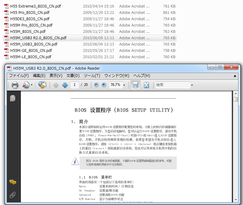 ちなみに余談ですが、付属のBIOSマニュアルは中国語しか
