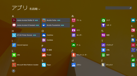 インストールされているアプリ一覧も、タッチ操作には向いているけど、やっぱりマウス操作には不向き。