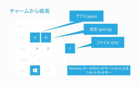 Windows 7 に比べると、検索関係のショートカットが増えています。