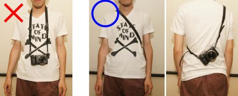そのため撮影をするときはいちいち左腕をストラップにくぐらせて、首からぶら下げているだけのスタンダードな掛け方に直す必要がありました。