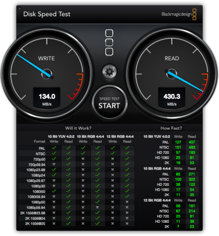 今回は、ストレージスピードの計測に「Blackmagic Disk Speed Test」を使用しました。