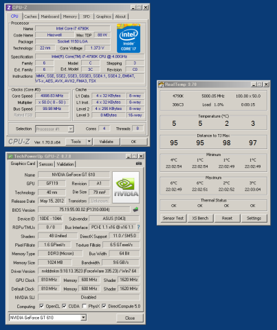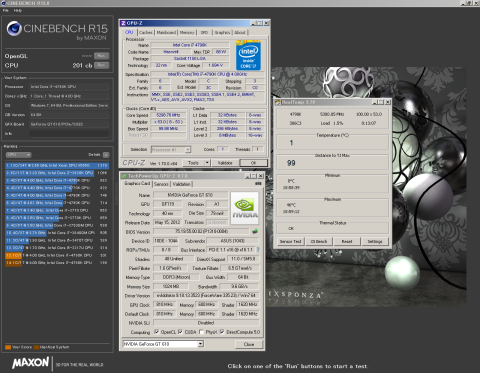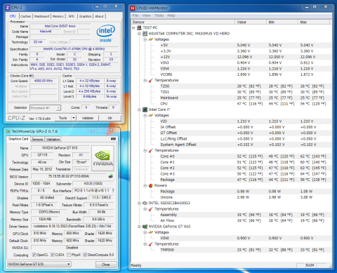 全コア有効・ハイパースレッティング有効で、パフォーマンスを優先としたOC結果です。OSが起動し、CINEBENCH R15と3DMARK VANTAGEが完走できるので、動作的に問題ないと思います。