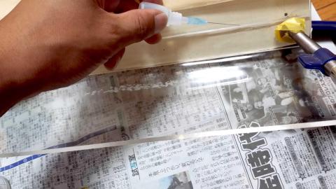 電気ストーブでアクリルを曲げたのですが、熱を当てすぎて気泡がはいっちゃいました。