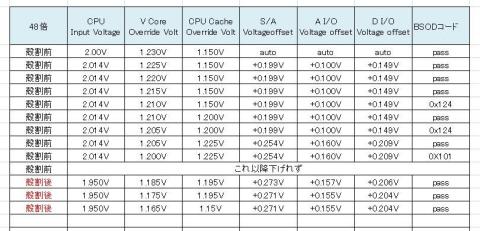 自分のオーバークロックの基準にするため、0.05Vづつ下げていってます