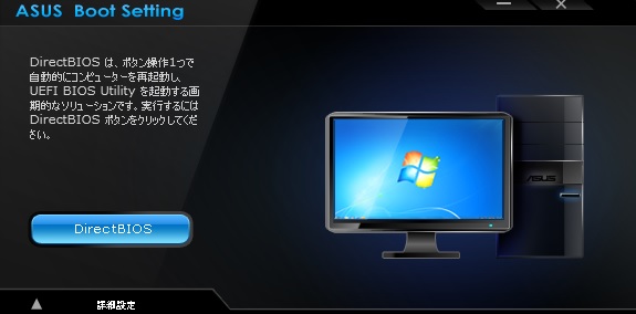 Direct BIOSを使うと、再起動させてバイアス画面を出すことができます。