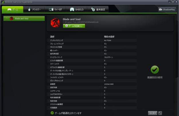 2014/08/24(追記)NVIDIA GeForce Experienceでゲームの最適化