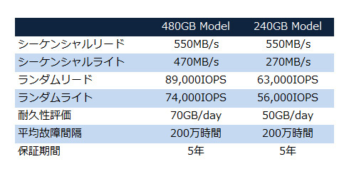 インテル730Seriesは、240GBモデルと480GBモデルがラインアップされています。