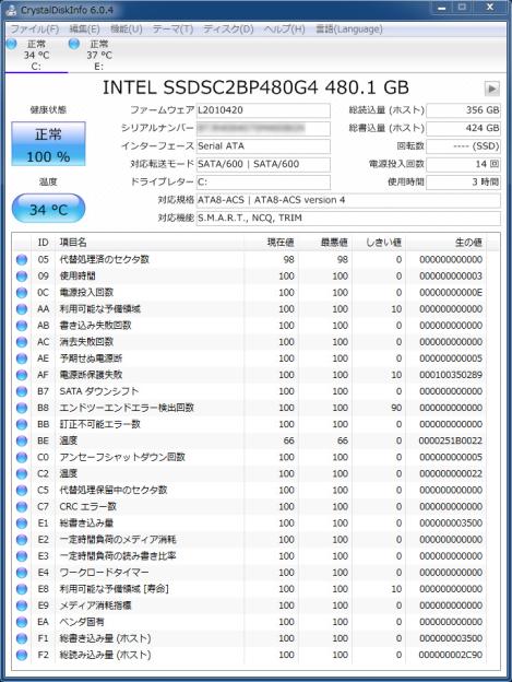 現在もノートPCの起動ドライブとして現役で動作し続けています。