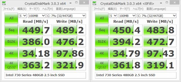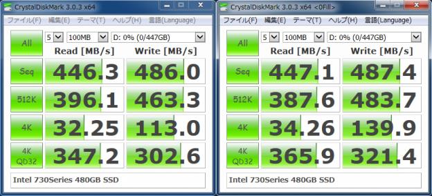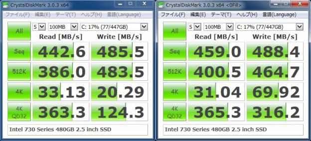 一方、インテル 730Series 480GB SSDのベンチマークデータは、