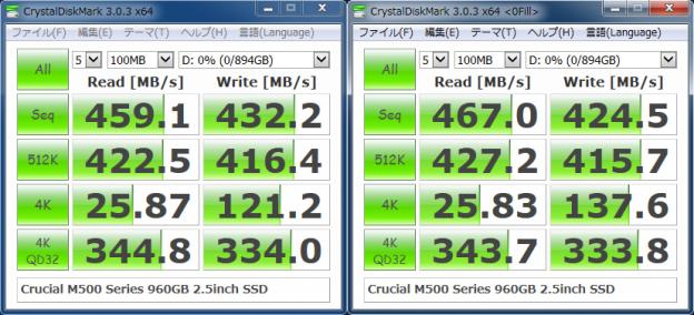 (2) データドライブとして、Crucial M500 960GB SSD(現行品より1世代前)と比較をしたい。