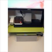 あと、発見したのは机やテーブルの上に置くと、テーブル面に反射して 中高音域がきれいに聴こえる事。 普通は余分な音の反射は抑えたほうがいいらしいですが、スピーカーが小さいので、いい具合に聴ける可聴範囲が狭いんです。中高音域は比較的まっすぐ進むので、少しでも顔を横にズラスと聞こえなくなってしまいます。 それがテーブルの反射で、中高音域の可聴範囲が広がってるんだと思います。 (これ、私の中では大発見!)