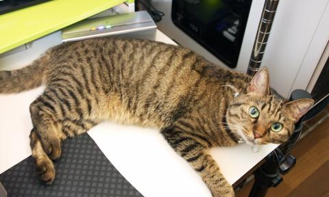 その後、モニターの正面に置きました。液晶タブレットがあって、机に置けなかったので、上に配置しました。