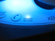 中:サウンドモードボタン、ハンズフリーモードボタン、スタンバイ/ソースLED(サインランプ)