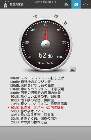 Androidアプリの騒音計で測ってみました。