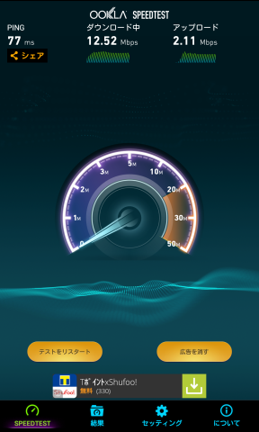 山小屋内に退避中に、このXperia Z Ultraでネット接続速度を測定してみたのがこちらのスクリーンショットです。富士山でもかなり高速にネット接続できていますね。
