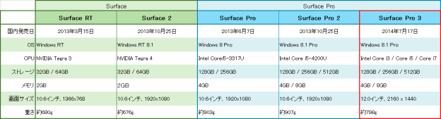 Surfaceシリーズはこれまでに下記の5種類が登場しており、今回レビューするSurface Pro 3はこの中で最新のシリーズとなっています。