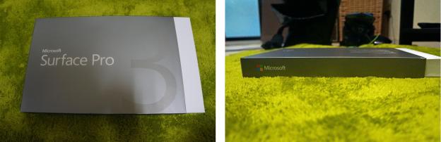Surface Pro 3はこのような箱で梱包されています。前面を見るとノートパソコンが入っているかのような大きな箱ですが、側面の薄さはやはりタブレットといった感じがします。
