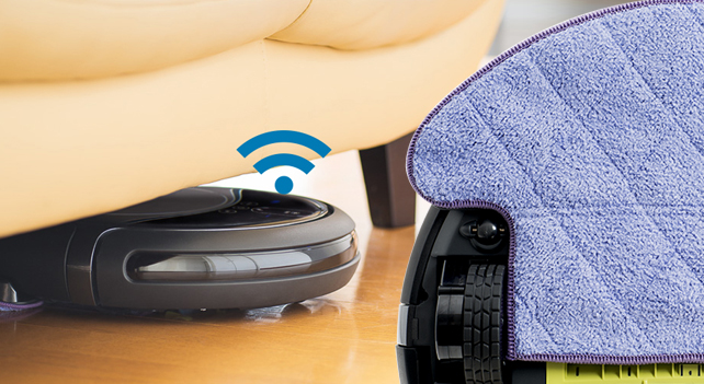 モップがけも同時に行える機能搭載。真空吸引とモップがけを同時に行うハイブリッド清掃で、見えなかった細かいほこりや花粉、ハウスダストを取り除きます。