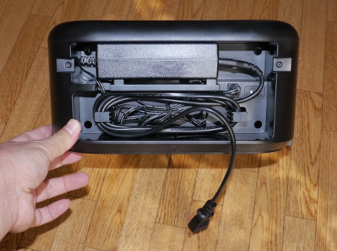 説明書を読むと、ここにACアダプタやコードを納めるようです。