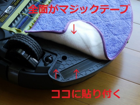 モップの裏面全体がマジックテープになっていて、ボードと固定できます。