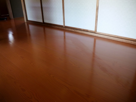 水拭きだけじゃなくて、モップに 「つや出しクリーナー」を吹きかけて