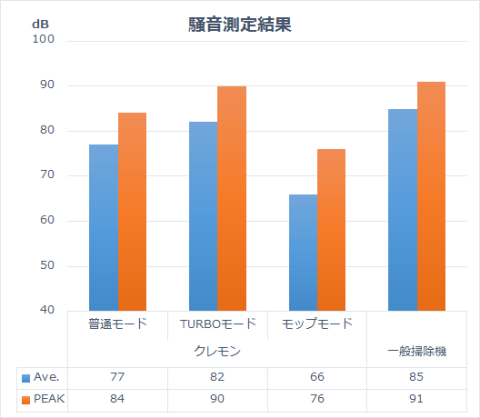 次は気になっていた、お掃除動作の騒音(音量)を測定してみました。