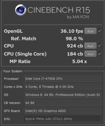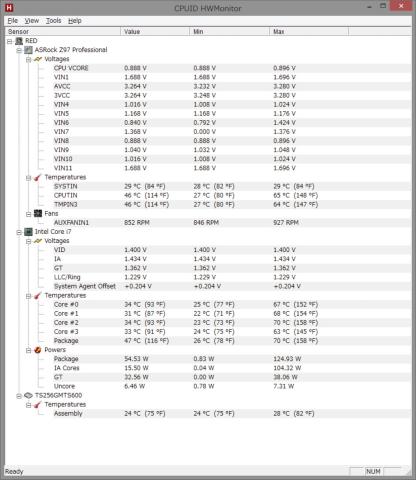 i7-4790Kは通常、CPUクロックが800MHz〜4.4GHzまでの間を変動しますので、正しいベンチを測定するには周波数の固定化が必要と考えます。ただ、この場合はCPUの温度は常に高負荷となりますので、ファンの冷却能力が高くないと対応できません。