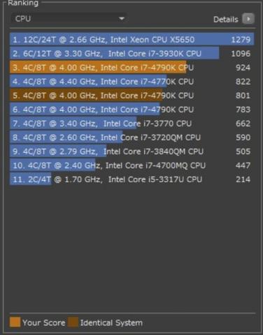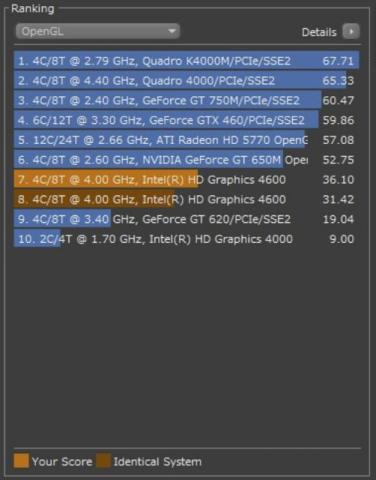 CINEBENCHもグラフィック周りのベンチマークです。特徴的なのはインターネット上で公開されているデータを基に比較ができます。一般的にベンチマークは自分の結果を表示するものがほとんどですが、設定の結果について効果があったか客観的にみることができるのがうれしいです。