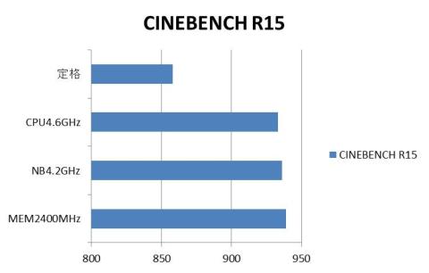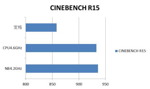 参考までにオーバークロックによるCINEBENCH R15のスコアの目安として4790K定格時のスコアは「858」であったことを記載しておきます。