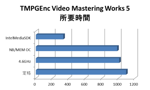検証には、効果がわかりやすいという意味で「TMPGEnc Video Mastering Works 5」のエンコード時間を比較します。