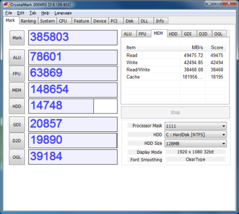 CrystalMark2004R3でメモリの転送速度を見てみました。